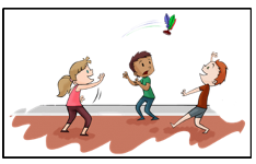 Đặt cậu: Các bạn đang chơi đá cầu rất vui vẻ.