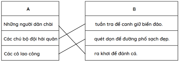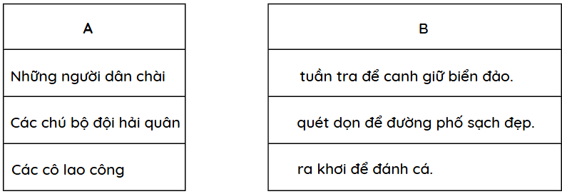 Câu 7. Nối từ ở cột A và cột B để tạo thành câu: