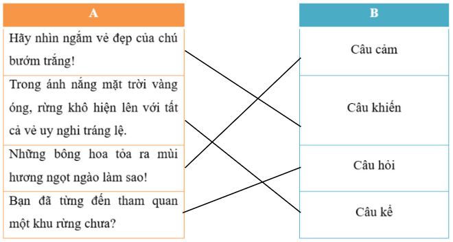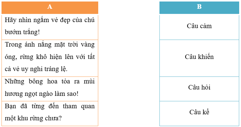 Câu 9. Nối các câu đã cho ở cột A với kiểu câu thích hợp ở cột B: