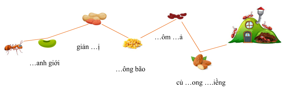 Câu 9. Điền d, r hoặc gi thích hợp vào chỗ chấm để giúp chú kiến tha đồ về tổ: