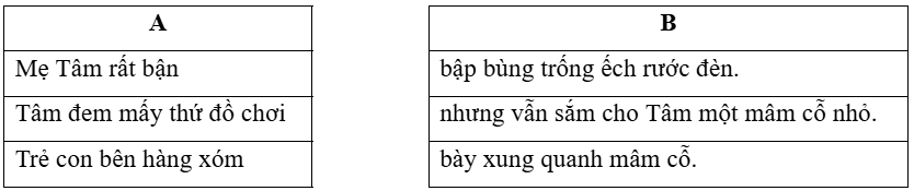 Câu 7. Hãy nối vế câu ở cột A với ý thích hợp ở cột B phù hợp với nội dung bài đọc.