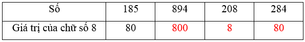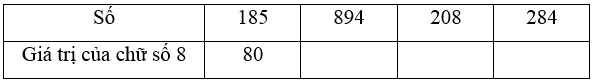 Câu 1. Viết giá trị của chữ số 8 trong mỗi số có trong bảng (theo mẫu):
