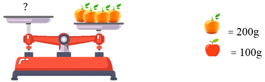 5. Quan sát và cho biết cần mấy quả táo để chiếc cân thăng bằng: (0,25 điểm)