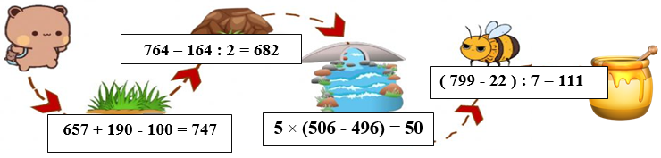 Câu 3. Điền số thích hợp vào ô trống để giúp Gấu Nâu tìm mật. (1 điểm)