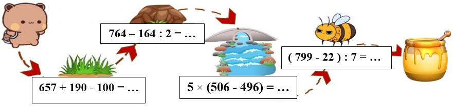 Câu 3. Điền số thích hợp vào ô trống để giúp Gấu Nâu tìm mật.