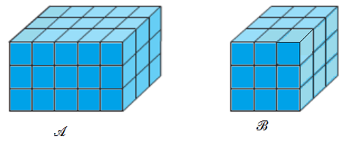 Cho 2 kiện hàng có dạng khối hộp chữ nhật A và B. Biết mỗi kiện hàng được xếp từ nhiều thùng nhỏ hình lập phương, mỗi thùng nhỏ hình lập phương này đựng được 2 l dầu thực vật.