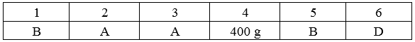 6. Các số điền vào dấu hỏi chấm lần lượt là: (0,5 điểm)