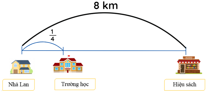 5. Hãy cho biết từ nhà Lan đến trường dài bao nhiêu, biết quãng đường từ nhà Lan đến hiệu sách dài 8km. (0,5 điểm)