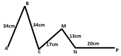 34 x 2 + 17 + 13 + 20 = 118 (cm)