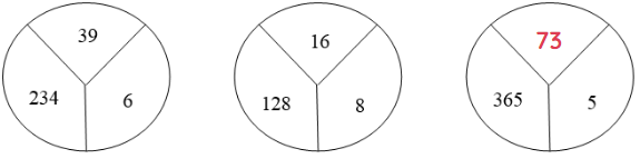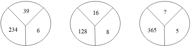Câu 8. Tìm quan hệ các số trong một hình tròn sau rồi điền số thích hợp vào chỗ dấu chấm hỏi? (1 điểm)