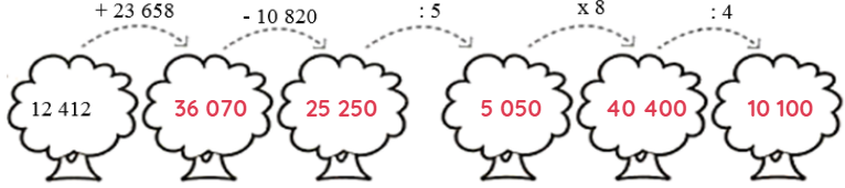 c. Lan mua một quyển vở giá 4 500 đồng và 2 cái bút, mỗi cái bút có giá 2 500 đồng. Lan đưa cô bán hàng 20 000 đồng. Hỏi cô bán hàng phải trả lại lan bao nhiêu tiền?