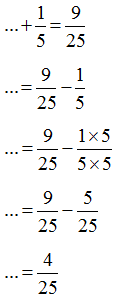 \(\frac{4}{25}\) + \(\frac{1}{5}\) = \(\frac{9}{25}\)