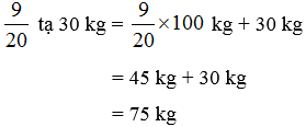 \(\frac{9}{20}\) tạ 30 kg = 75 kg