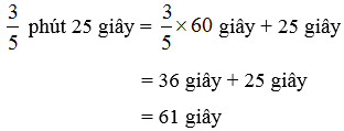 \(\frac{3}{5}\) phút 25 giây = 61 giây