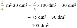 \(\frac{3}{4}\) m2 30 dm2 = 105 dm2