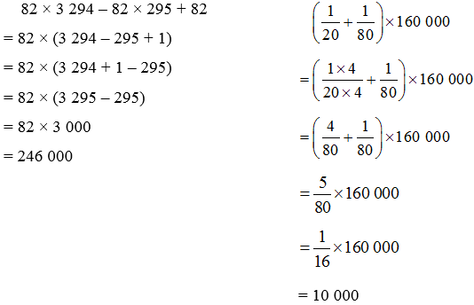 (\(\frac{1}{20}\) + \(\frac{1}{80}\)) x 160 000 = .................................................................... = .................................................................... = .................................................................... |