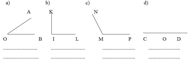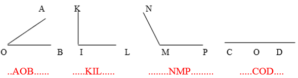 Câu 2: Viết vào chỗ chấm tên các góc.