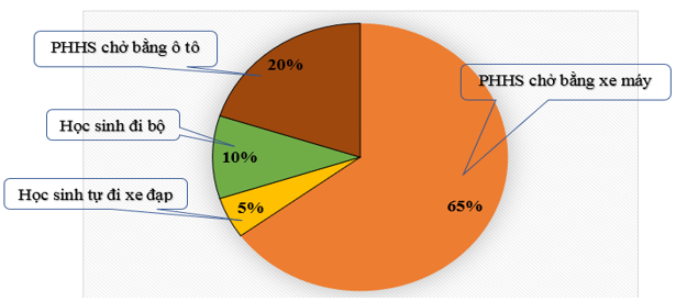 Số học sinh được phụ huynh chở bằng xe máy đến trường là: