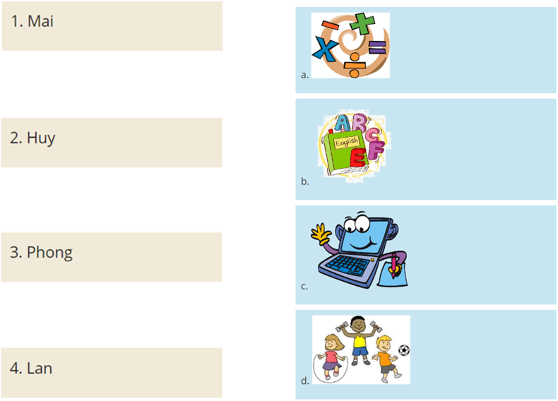 Câu 2: Listen and match (Ghép đáp án ở cột A với đáp án tương ứng ở cột B)