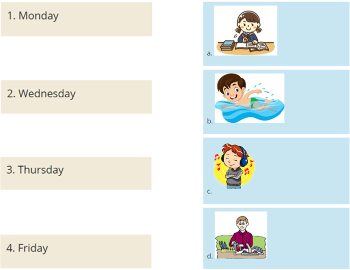 Câu 2: Listen and match. (Ghép đáp án ở cột A với đáp án tương ứng ở cột B).