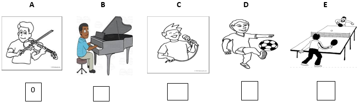 PART 1: Questions 1 - 4: Listen and match. There is one example. (1pt)