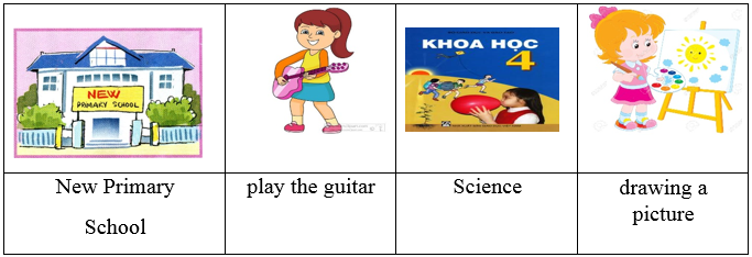 This is my new friend. Her name is Laura. She is a pupil at (0) New Primary School . She in class 4D. She goes to school from Monday to Friday. At school, she has many subjects. Her favourite subject is (8)…………………………Today is Tuesday. She is having an Art lesson. She (9)……………………………………………………..She likes music very much and she can (10)…………………………..................................She often goes to the Music Club at the weekend..