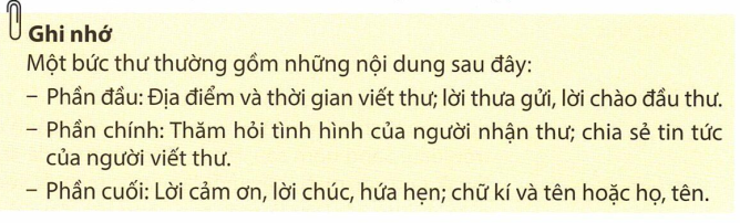 b. Bức thư gồm mấy phần? Nêu nội dung của từng phần.