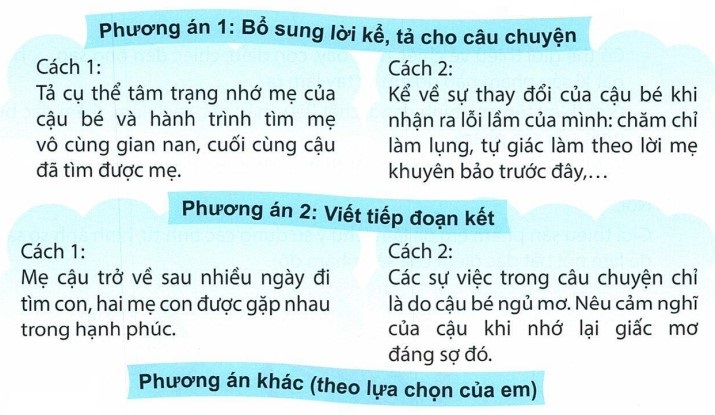b. Lựa chọn một phương án viết đoạn văn tưởng tượng: Phương án 2: Viết tiếp đoạn kết.