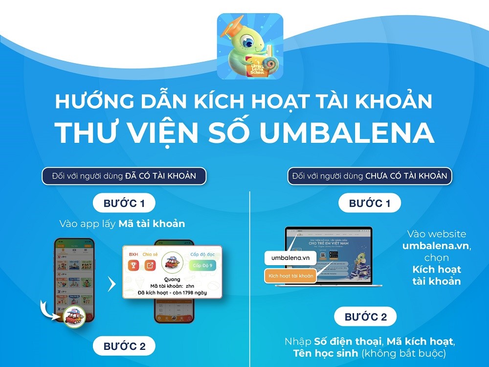 Quý khách hàng vui lòng thực hiện theo các bước dưới đây để kích hoạt tài khoản Thư viện số Umbalena School