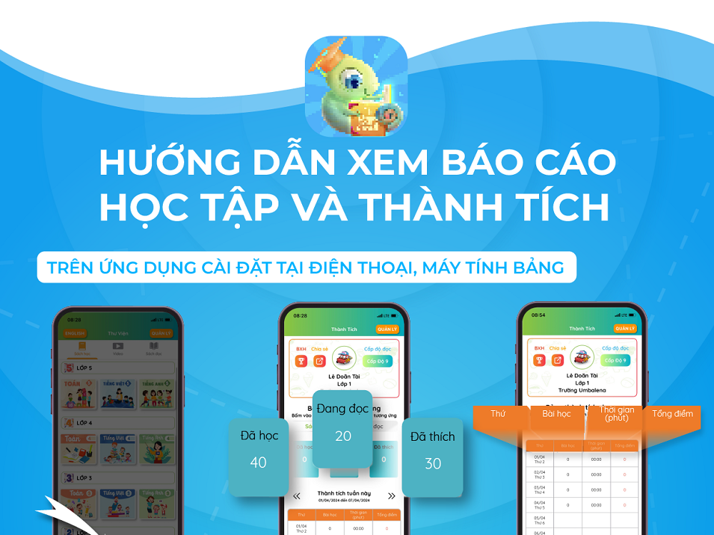 Hướng dẫn xem báo cáo học tập và thành tích của con trên Thư viện số Umbalena School
