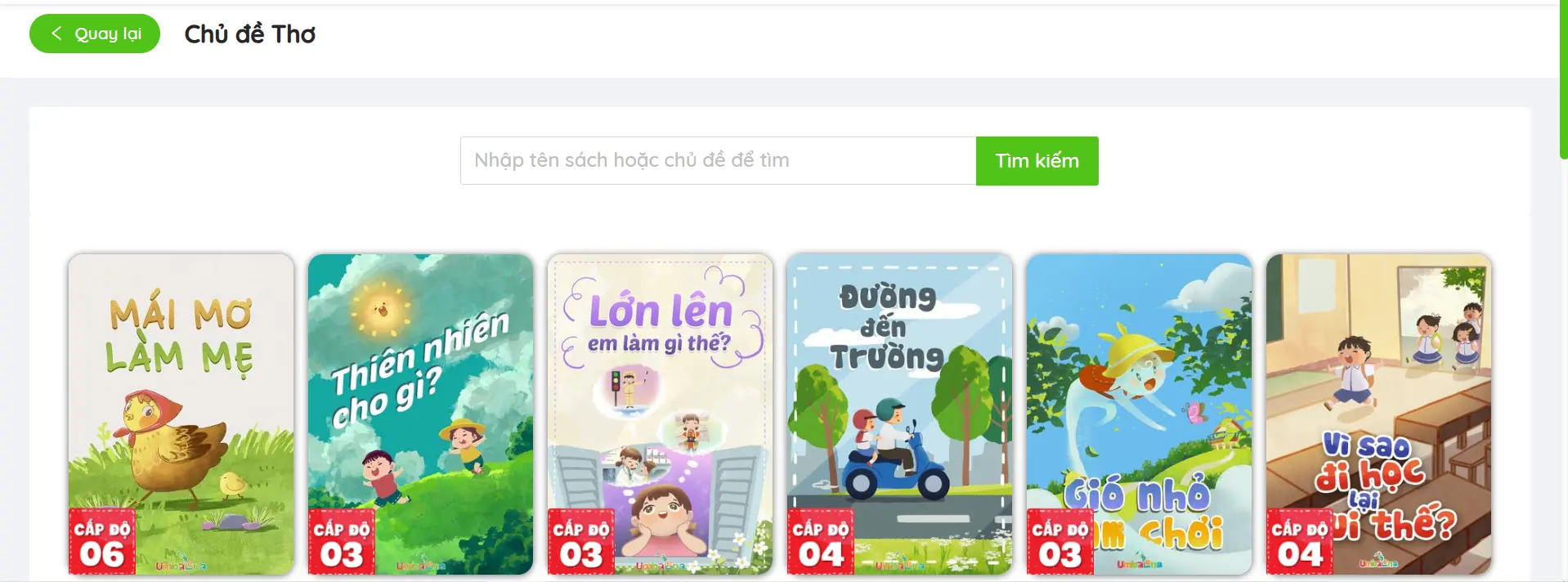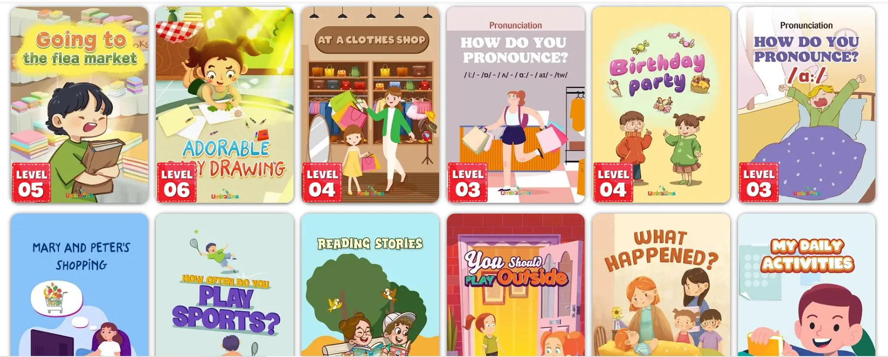 Ứng dụng Umbalena cung cấp hàng trăm đầu sách truyện tiếng anh cho bé vừa giúp bé phát triển tư duy ngôn ngữ mới vừa giúp bé hứng thú hơn với việc học qua sách.