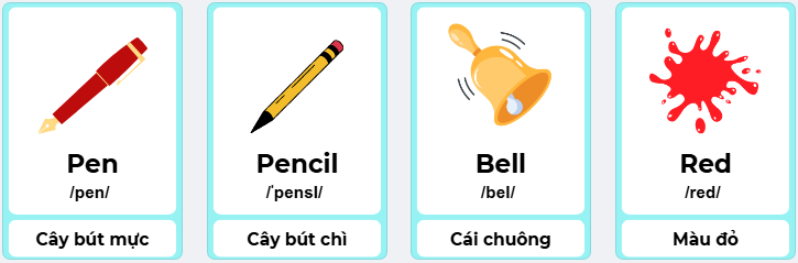 - Hình ảnh minh họa: Sử dụng thẻ từ và hình ảnh minh họa trực quan, sinh động, dễ hiểu cho từng từ vựng trong bài học: