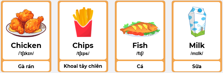 + Chicken /ˈtʃɪkɪn/: gà rán