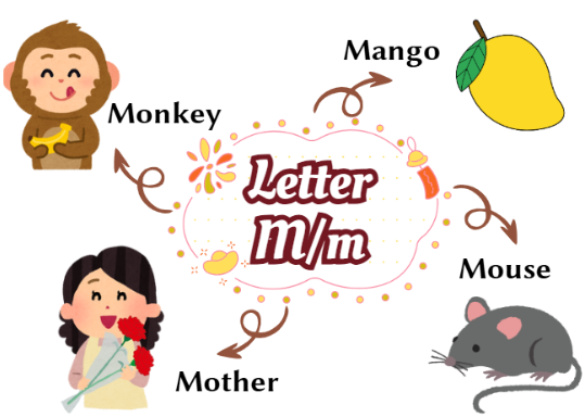 + Bài mới, các bạn có thể nhận biết và phát âm chính xác âm của chữ M/ m khi đứng riêng lẻ và trong các từ :”Mango”, “Monkey”, “ Mouse”, “Mother”.