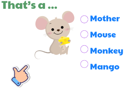 - Hình ảnh minh họa: Sử dụng hình ảnh trực quan, sinh động và dễ hiểu cho từng từ vựng, ví dụ: con chuột (bé sẽ bắt đầu nhận dạng và trả lời “Mouse”)