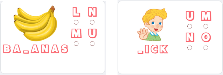 + Bài mới, bạn có thể nhận biết và phát âm chính xác âm của chữ N/ n trong các từ vựng:”Nick”, “nuts”, “noodles”, “bananas”.