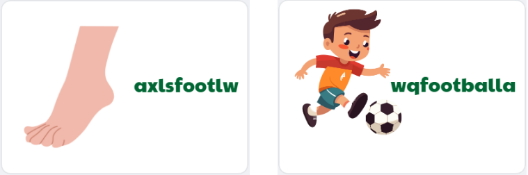 - Thực hành tạo câu: Cho trẻ thực hành bằng cách lần lượt đưa từng ảnh minh họa tương ứng với các chữ có âm của chữ F/ f: “Foot” (bàn chân), “Face” (khuôn mặt), “Football” (Đá bóng), “Father” (Bố, ba).