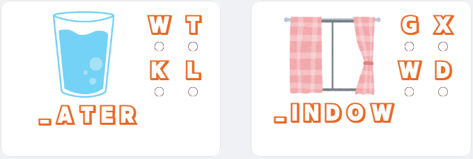 + Cho trẻ thực hành bằng cách lần lượt đưa từng ảnh minh họa tương ứng với các chữ có âm của chữ W/ w: “Window” (Cửa sổ), “Washing” (Lau dọn), “Wendy” (Bạn Wendy), “Water” (Nước).