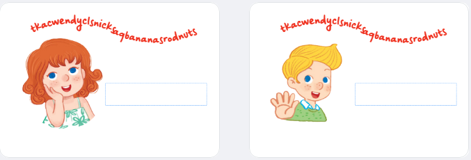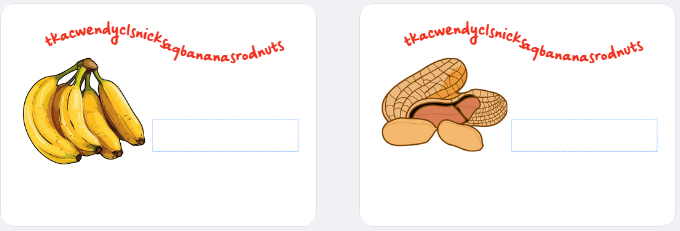 + Cho trẻ thực hành bằng cách lần lượt đưa từng ảnh minh họa tương ứng với các chữ có âm của chữ N/ n: “Nick” (bạn Nick), “Nuts” (những hạt lạc, đậu), “Noodles” (Mì), “Bananas” (những quả chuối).