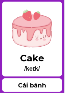 + Cake /keɪk/: cái bánh
