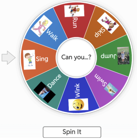 + Vẽ hoặc dùng vòng quay đồ chơi, chia thành các hoạt động: Ride a bike, Play the piano, Swim...