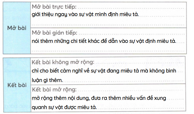 Ghi lại những điểm khác nhau giữa hai cách mở bài và hai cách kết bài trong bài tập 2 (SHS Tiếng Việt 4, tập một, trang 113).
