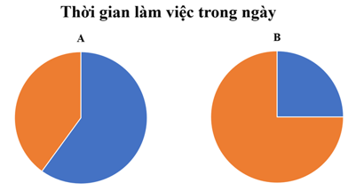 Bài 4. Thời gian làm việc trong một ngày của ba bác công nhân A, B lần lượt là 25%, 40%. Mỗi biểu đồ bên biểu thị thời gian làm việc trong một ngày của ai? (1 điểm)