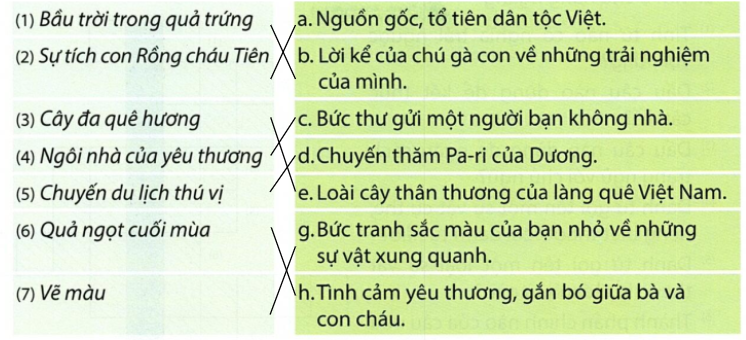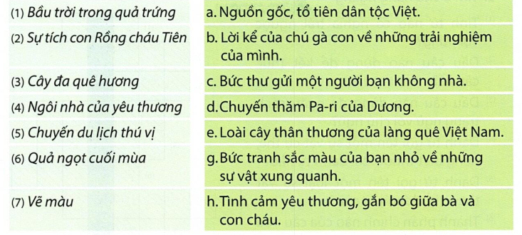 Tìm nội dung tương ứng với tên bài đọc.