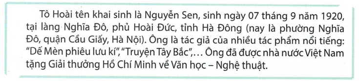 + Tô Hoài là nhà văn nổi tiếng của Việt Nam.
