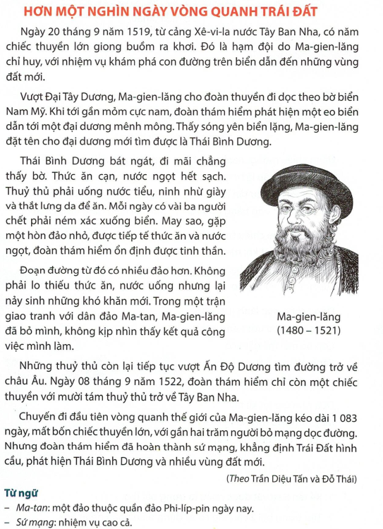Ngày 20 tháng 9 năm 1519 là ngày Ma-gien-lăng chỉ huy hạm đội đi khám phá con đường trên biển dẫn đến những vùng đất mới.