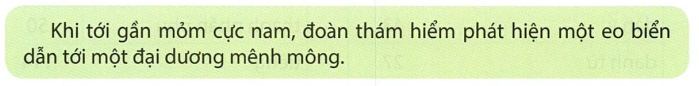 Khi tới gần mỏm cực nam/, đoàn thám hiểm/ phát hiện một eo biển dẫn tới một đại dương mênh mông.