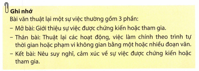 - Bài văn thuật lại một sự việc thường gồm 3 phần: