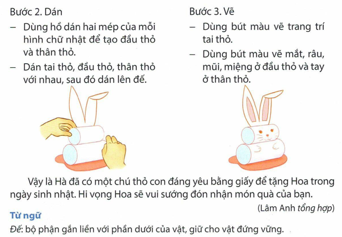 Dựa vào bài đọc, trình bày 1 – 2 bước làm thỏ con bằng giấy.