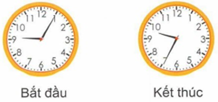 b) Buổi chiều, Nam nướng bánh quy để tặng các bạn. Thời gian bắt đầu và kết thúc như sau: